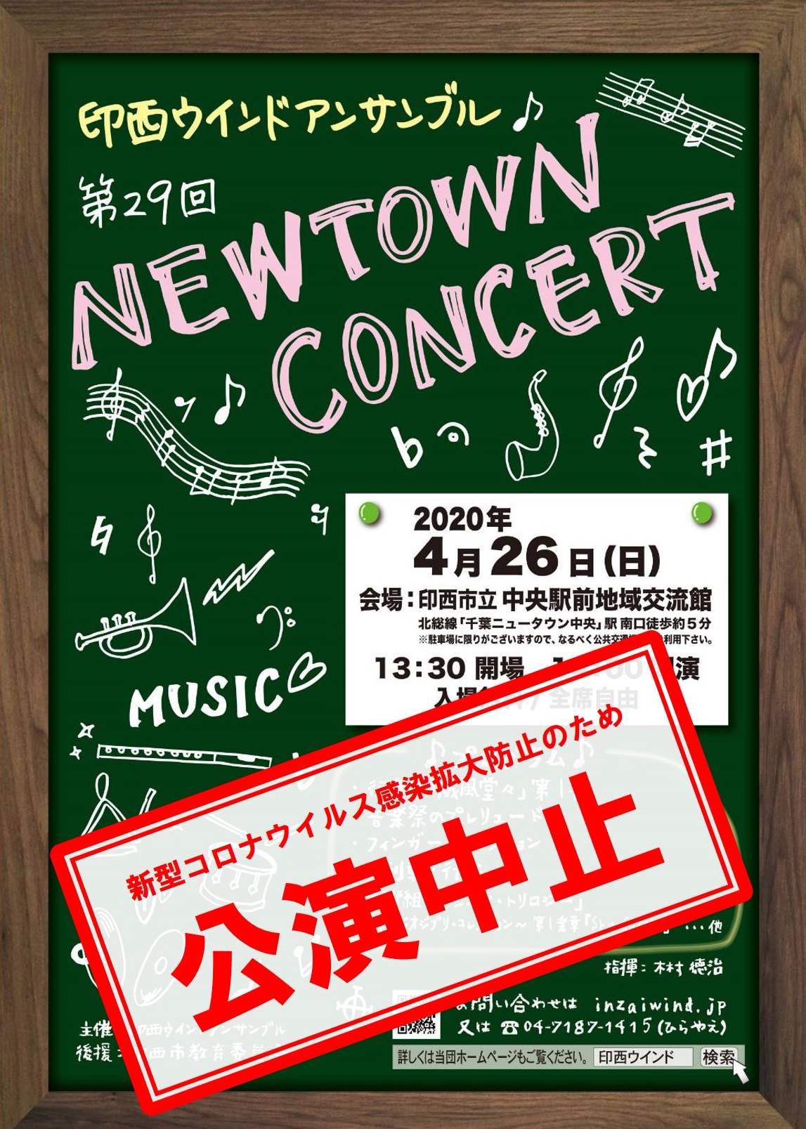 第29回ニュータウンコンサート(中止) クリックで拡大(別タブで表示) 開催日2020年4月26日(日) 時間開場 13:30 / 開演 14:00 会場印西市中央駅前地域交流館 指揮木村 徳治 備考 新型コロナウイルス感染拡大防止のため公演中止 ← 前の演奏会 次の演奏会 →
